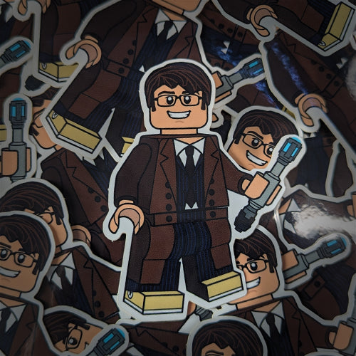 Glossy super cool sticker based on my custom Dr How? minifigure design for the 10th Doctor!