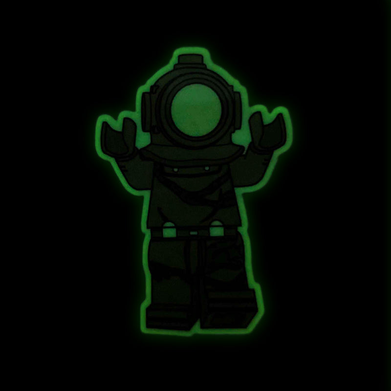 Glossy Glow in the Dark sticker based on my custom Mysteries Inc. minifigure design for the Ghost Diver!